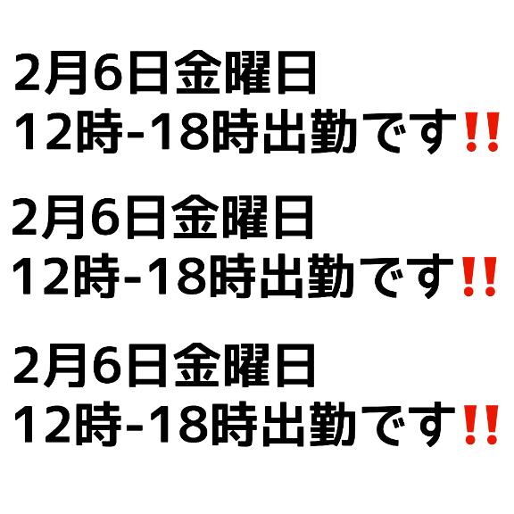 今日が出勤になっていない…!?本日2/6(金)12時-1…